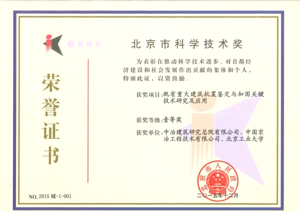 既有重大建筑抗震鑒定與加固關(guān)鍵技術(shù)研究及應(yīng)用-2015年北京市科學(xué)技術(shù)獎(jiǎng)一等獎(jiǎng)(總院-京冶-北京工業(yè)大學(xué))