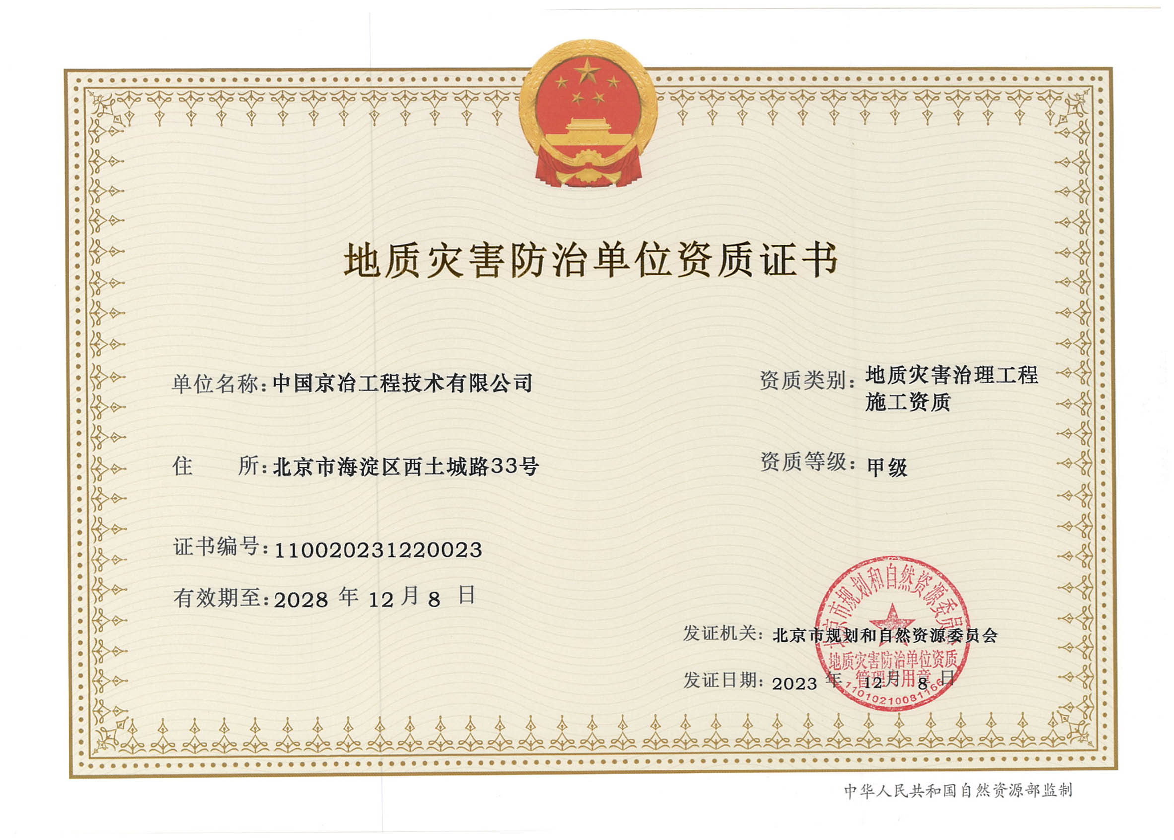 工程勘察甲級資質證書