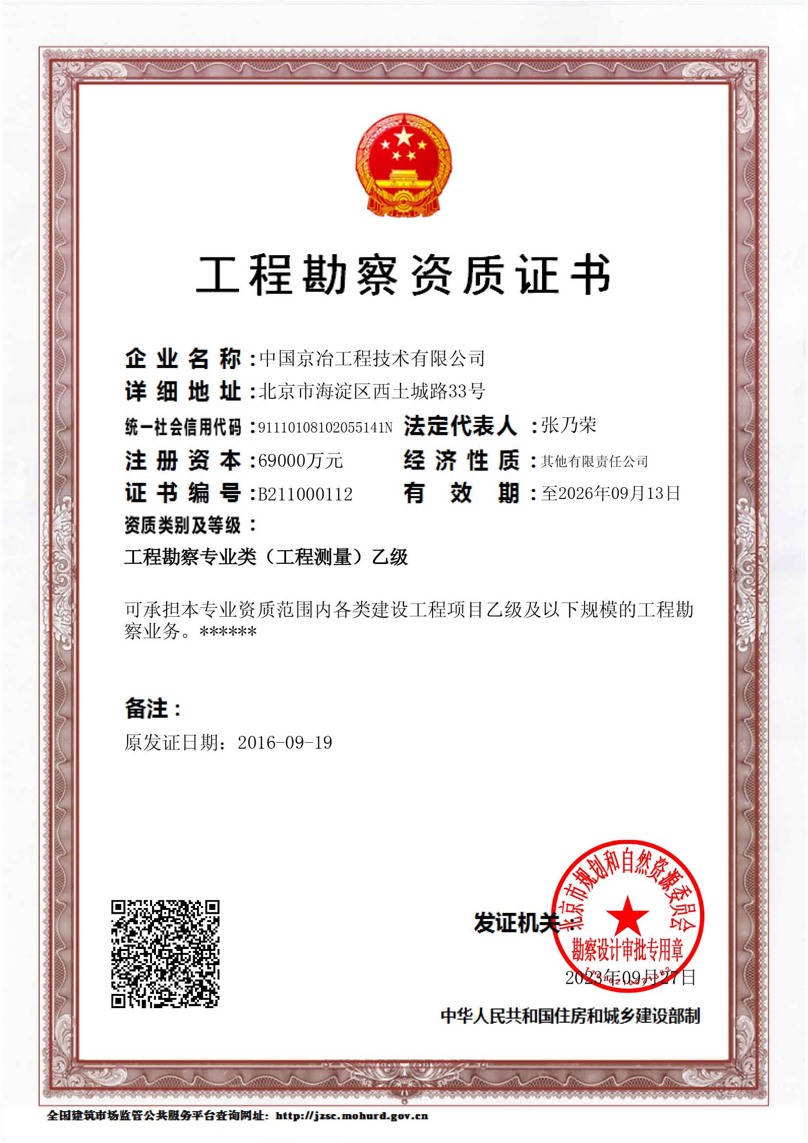 工程勘察專業(yè)類(工程測量)乙級資質(zhì)